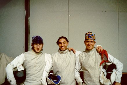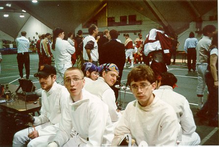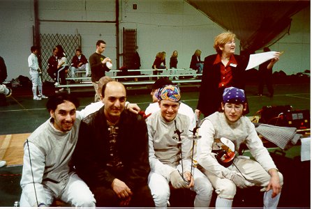 Foilists: Turin Pollard, Dave Silva, Rich Harang. Foilists: with Arut Akskalyan Epeeists: James Kent, Nic Neisingh, Logan Yanson Sabruers: Nathaniel Keith, Greg Kronenberger, Don Huckins Resting: Logan, Nic, Turin, Rich, James, Dave