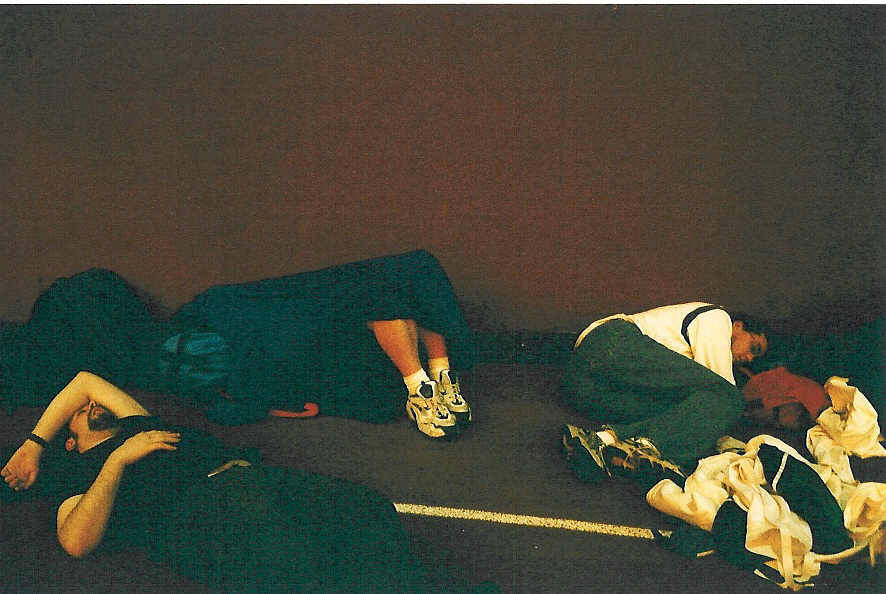 Epeeists: Foilists: A Team Panic: Checking the zip on (and in) the fencer: Epeeists at rest: Dead team & spare legs: